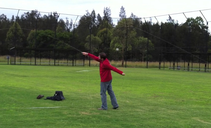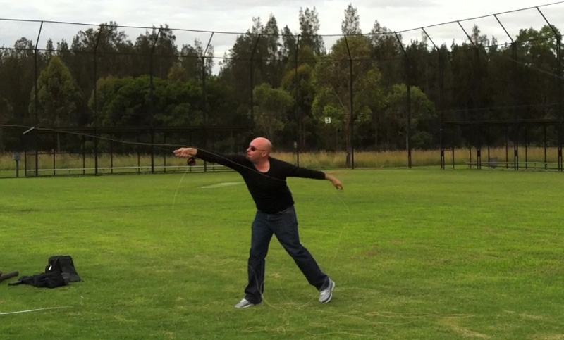Here its quite clear, Ed is about to begin his haul, the rod is loaded and he looks quite relaxed (well if you know Ed, that’s relaxed!). There isn’t a whole lot wrong with this, its a 100’ cast.