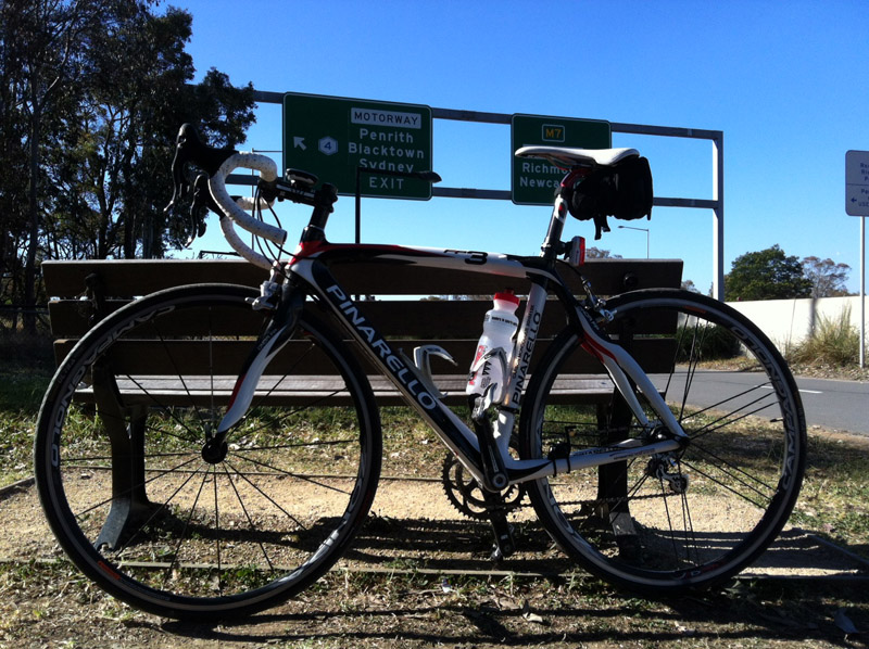 Pinarello at the M4 / M7 junction, the Lighthorse Interchange. Absolutely glorious weather.